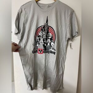 Gray t-shirt featuring Walt Disney World graphic with iconic characters.