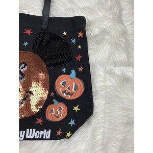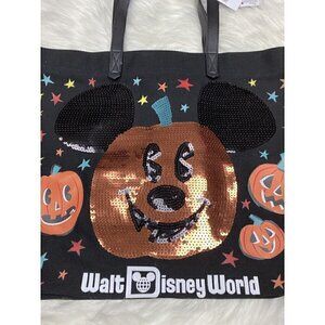 NWT Walt Disney World Mickey Mouse Halloween Tote Bag Black Pumpkin Sequins
