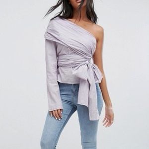 -"Ellen" one-shoulder self tie blouse in bright white 100% cotton