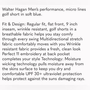 NWT | Walter Hagen Men's Golf Shorts P11 Soft Blue Size 36 Inseam 9”