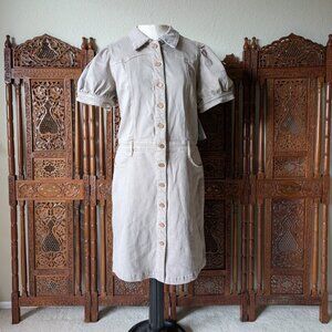 NWT Wash Lab Denim Puff Sleeve Button Down Denim Dress Buff Size Large