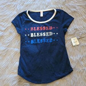 NWT Way to celebrate patriotic womens red, white and blue blessed sheer shirt size xs