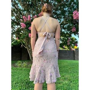 Flare Hem Lace Dress Blush Embroidered Sz. Medium