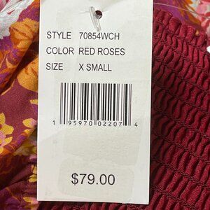 NWT Wayf Gathered Sweetheart Neckline Floral Top in Red Roses Sz. XS