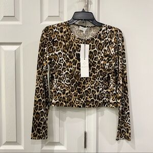 NWT Wayf Leopard Print Crew Neck Long Sleeves Crop Top Tan/Black Size Medium M