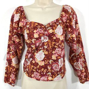Wayf Rose Floral Crop Top Sz M Smocked Stretch Back Sweetheart Neckline