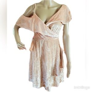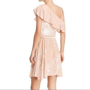 NWT Wayf Velvet Belted Blush Powder Pink Cold Shoulder Ruffle detail Mini Dress