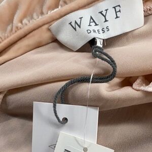 New with tag Wayf Velvet Belted Blush Powder Pink Cold Shoulder Ruffle detail Mini Dress. 75% Rayon/25% Nylon. Unlined. Retails for $178.00