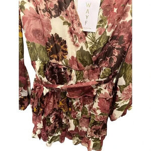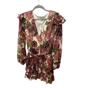 NWT Wayf Women's Long Sleeve V-Neck Ruffle Rose Floral Dress Size Medium