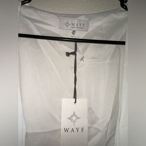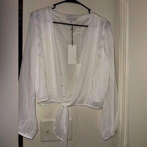 NWT Wayf white sheer lace button tie front blouse S office wear work wear career