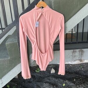 NWT We Are Hah X Intimately Free People Rose Colored Open Backed Body Suit Long Bell Sleeves Sz Small. Super soft lightweight material perfect for warm weather.