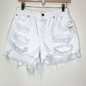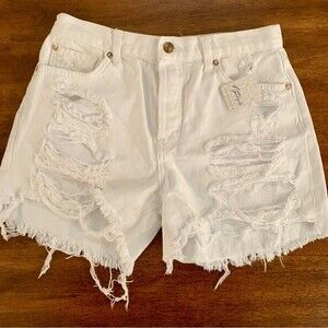 NWT We The Free Free People Maggie Mid Rise White Distressed Shorts 26