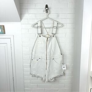 New with the tag attached. We the free sub brand of free people. Style is the sun kissed denim short overalls in shade off white. Size 8. 100% cotton. Raw fray hemline. Peak out pocket contrast. Front zip detail and has pockets. All sales final.