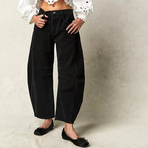 NWT We The Free Good Luck Mid-Rise Barrel Jeans in Black