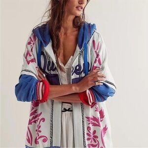 NWT We The Free Royals Hoodie Jacket S Ivory Combo Embroidered Oversized