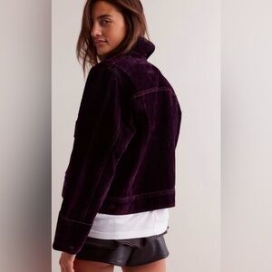 NWT We The Free Suzy Flocked Denim Jacket XS Wine