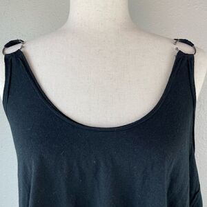 Stylish tank top measuring 18 inches armpit to armpit laying flat and 23 inches in length from the shoulder to the hem.