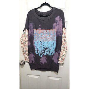 NWT We The Free Tie-Dye Sweatshirt Floral Buttoned Sleeves Graphic Oversized Fit