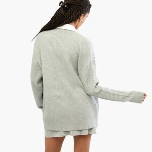 NWT We Wore What Heathered Gray Stretchy Cable Knit Varsity Sweater M/L