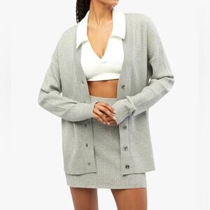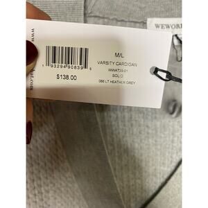 NWT We Wore What Varsity Cardigan M/L Heather Gray Button Front Knit V-Neck