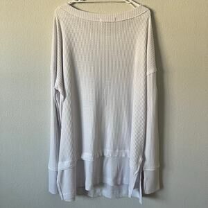 NWT We the Free White Thermal Waffle Knit Long Sleeve Drop Hem Blouse | Size L