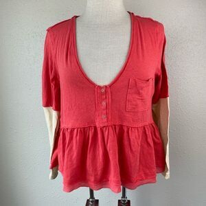 Super cute top measuring 18 inches armpit to armpit laying flat and 20 inches in length from shoulder to hem.