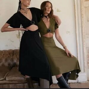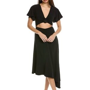 NWT WeWoreWhat Black Asymmetrical Cutout Dress Short Sleeve Flower Pin Size L