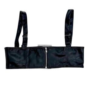 Revolves WeWoreWhat Cropped Faux Leather Straight Neckline Adjustable Straps Non Functional Silver Buckle Bandeau Top Metal Grommets Exposed Back Zipper XXL Black