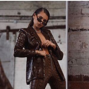 NWT WeWoreWhat Danielle Bernstein Faux Leather Snake Skin Button Down Bl…