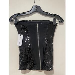 NWT WeWoreWhat Embellished Sequin Strapless Fitted Corset Top Black Women's 0
