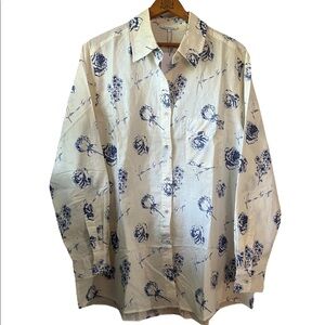 NWT WeWoreWhat Linen Dad Shirt Swim Cover Up Sarong Sz M Blue White Oversized