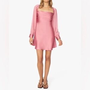 NWT WeWoreWhat Puff Sleeve Cowl Satin Mini Dress