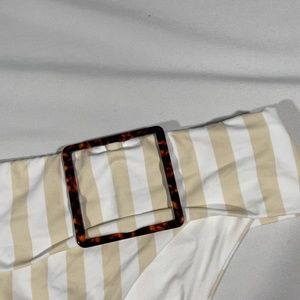 Bright pinstripes & a chunky buckled detail combine on these mod-inspired bikini bottoms by WeWoreWhat.