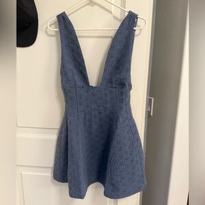 NWT WeWoreWhat Textured Knit Plunge Fit and Flare Mini Dress Blue size 6