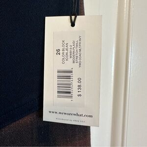 NWT WeWoreWhat color block icon jean brown and navy check plaid 70s inspired