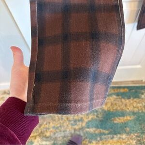 NWT WeWoreWhat color block icon jean brown and navy check plaid 70s inspired high rise, straight leg pants, women’s size 26