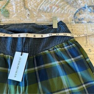 NWT WeWoreWhat low rise pant stretch waist plaid green blue extra long pockets