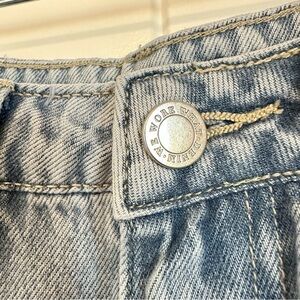 NWT WeWoreWhat slit hem faded mom jeans in real stiff denim - retro vintage inspired with chain detail, slit hems, high rise, straight leg, light wash women’s size 26