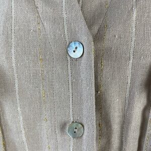 Classic and stylish button down shirt by Wear It featuring a linen blend, button up cuffs and a metallic pinstripe design. It measures 21 inches armpit to armpit and 26 inches in length.