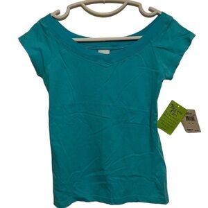 NWT Weavers 100% Cotton Turquoise V Neck Tshirt Size Medium