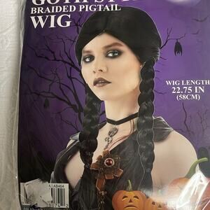 New in plastic. Goth style braided pigtail wig. Adult size. Wednesday Addams costume wig