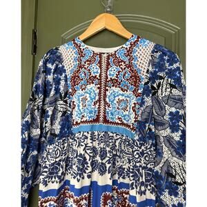 This is the Weekend Max Mara “Ghiotto” Dress in a striking turquoise-blue patchwork print. Crafted from 100% cotton, this midi-length beauty features a chic keyhole neckline, voluminous button-cuff sleeves, and practical side-seam pockets. Elegant yet comfortable, this dress is perfect for both special occasions and polished everyday looks.