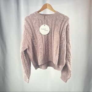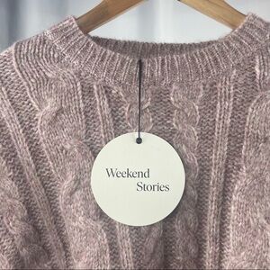 NWT Weekend Stories Alpaca Blend Antonia Cable Crew Neck Pullover in Blush Pink