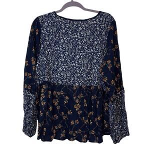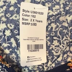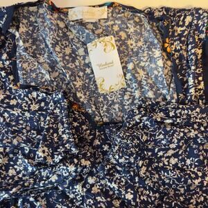 NWT Weekend Suzanne Betro Women’s Floral Tassel Blouse Size 2X Navy Blue