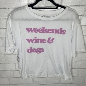NWT Weekends, Wine & Dogs Cropped Tee Shirt