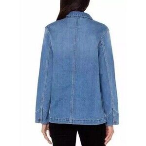 This is a NWT Well Worn Women's Barn Jacket. Made of denim fabric with a solid light blue color, it features long sleeves, a button closure, and three patch pockets. Suitable for travel, casual, or workwear occasions, it has a regular fit and is machine washable. This jacket is designed with a vintage style and is made in Bangladesh.