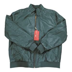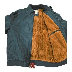 NWT Wenven Men's Polyurethane Blue Bomber Full Zip Jacket Sz 2XL Faux Fur Lined