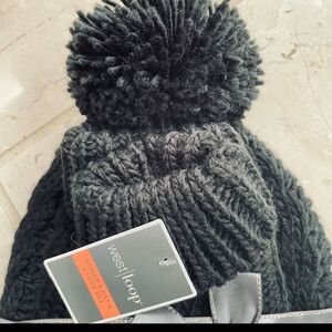 NWT West Loop Beanie Pom Pom Hat & Gloves Black Gift Winter Set!!!!
