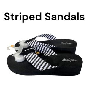 Black & White Stripe Women's Sandals Slip-On Wedge Style Size Large 9-10