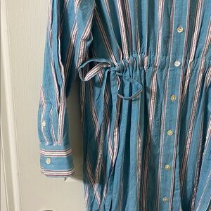 NWT Westbound 100% cotton stripe long sleeve button up dress w/ front waist ties